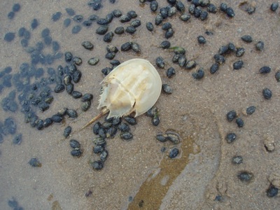 Horseshoe crab molt and snails. Would have made a nice addition to the mantle, but not allowed to remove anything from the sanctuary.