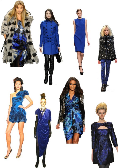 Here are some cobalt & black looks off the runway. For cobalt home décor on eBay, and other runway trends that we’ll see translated into interior looks this year, have a peek at my trend articles for The Inside Source: “New York Fashion Week Goes Home” (Part 1 and Part 2).