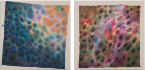 This morning, while reading through clips from L.A. style writers,  I came across a post about Los Angeles artist Hadley Holliday by Sierra Feldner-Shaw on Style Section L.A., a site I’ve now bookmarked.  I was immediately taken by Holliday’s work, especially the ones that give off a sort of really loose Frank Stella vibe, though the watery almost leopard print pieces are absolutely gorgeous (and I’m not even the animal print type.)