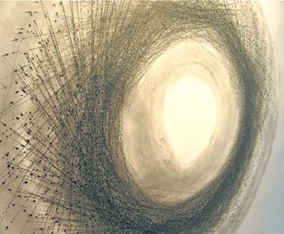 Tony Orrico uses the geometry of his own body to create intricate forms through repeated actions. The marks left behind reveal minute shifts in his position. This detail was the centerpiece of last week’s exhibit “In Our Wake,” which featured concrete representations of dance performances. Nielsen mounted the show in conjunction with The Movement Party.