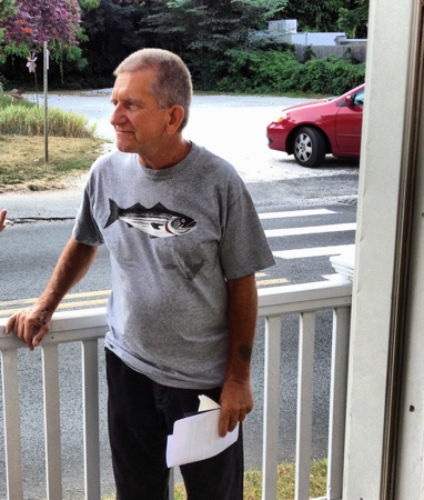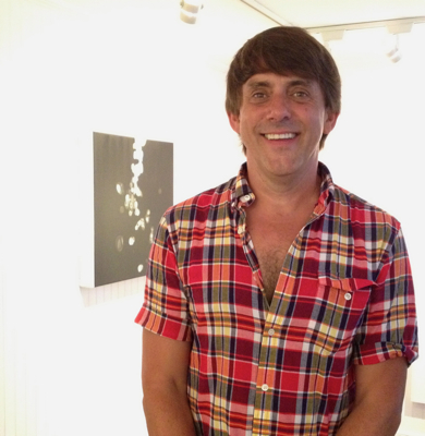 Tim Donovan at the opening of SundayMondayTuesdayWednesday on Saturday evening. I blogged about one of his photos I bought a few summers ago. He’s now represented by Gallery Kayafas in Boston, where he had a show last fall. The piece in the background is by Sam Trioli.