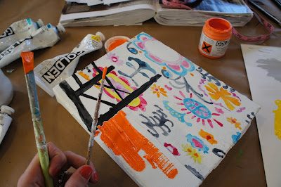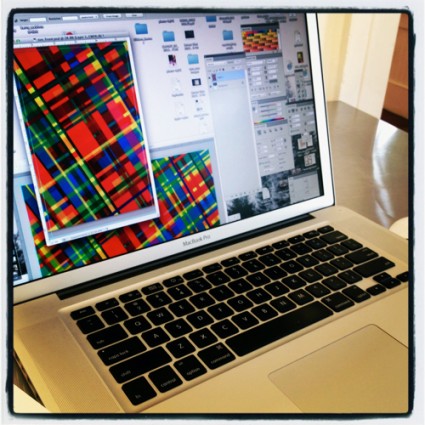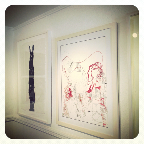 Nielsen was working on a postcard for the upcoming Pablo Manga show (7/7 – 8/8) when I stopped by early last week.