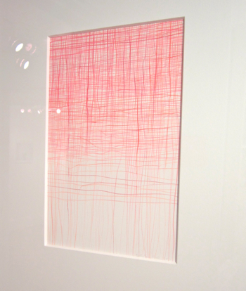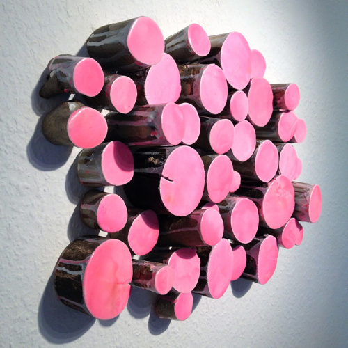 Jill Vasileff “Pink Hum,” acrylic on tree branches from “Around the Day in Eighty Worlds” at Farm this past June. It’s actually a bunch of individual pieces (Nielsen is selling them for $100 each or $3500 for all). It’s on the cover of this month’s Artscope Magazine.