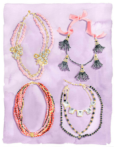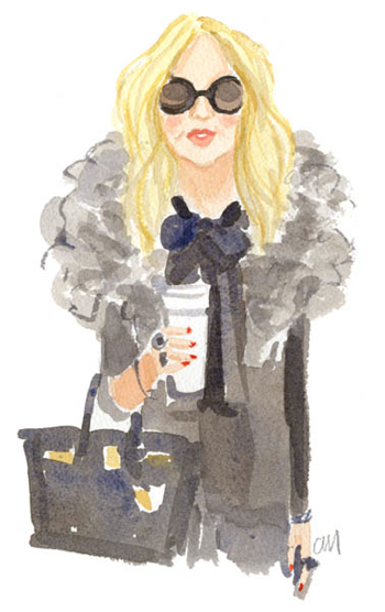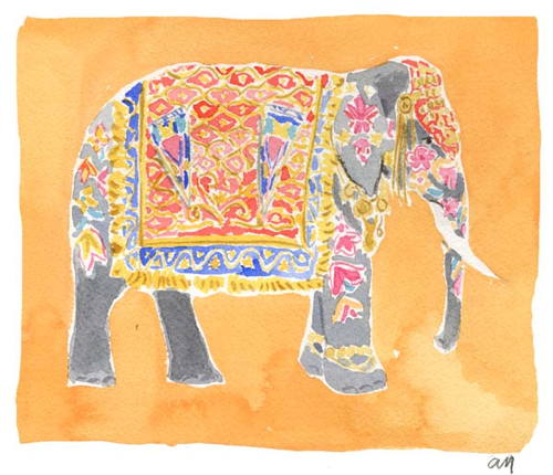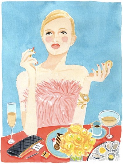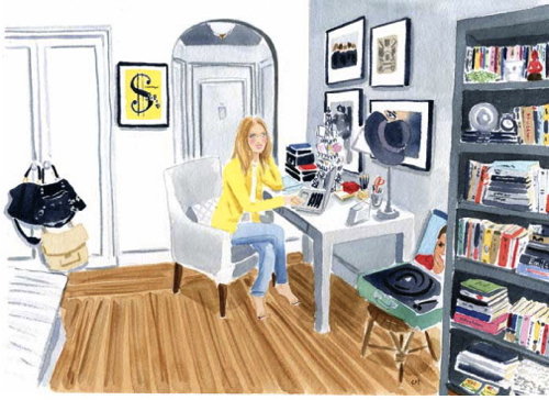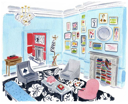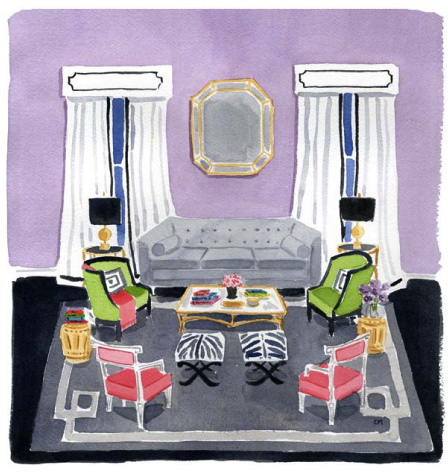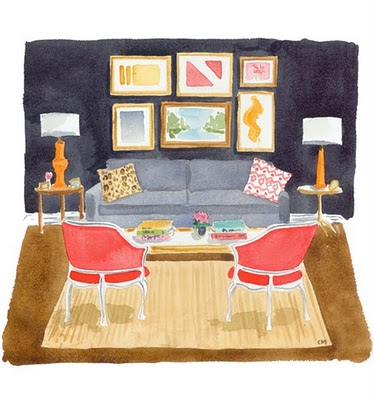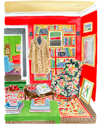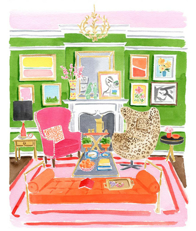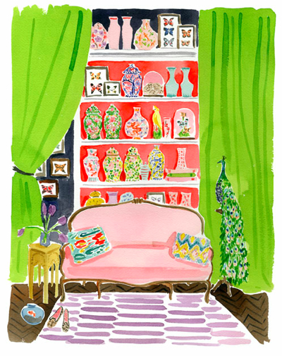 You’ve probably seen Caitlin McGauley’s work without even realizing it. She’s done sassy watercolors for Lonny and limited edition prints of luscious interiors for Kate Spade, and even portraits on the spot for chichi style events in New York. Her work is as appealing as her own visage—pretty, spirited, and stylish. She captures the likenesses of strangers on the street, well-known fashion icons, elephants in India, tasseled necklaces, charming foodstuffs, and rooms galore, which are my definite favorites.