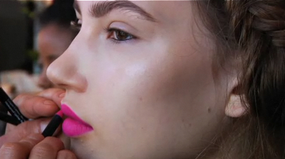 Some of the girls wore an electric pink lipstick that Jenna and her team loved – Funny Face by Nars. She says it’s about the punctuation mark of color in the otherwise earth tone palette.