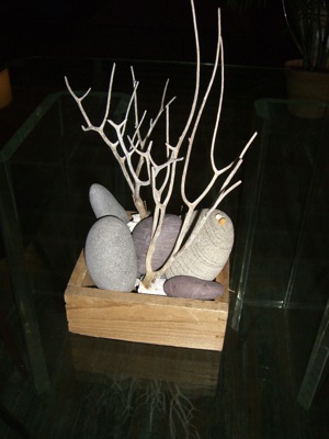 A sculpture she fashioned. The centerpiece is a piece of coral with branches growing out of it that she found and carried back from Mexico.