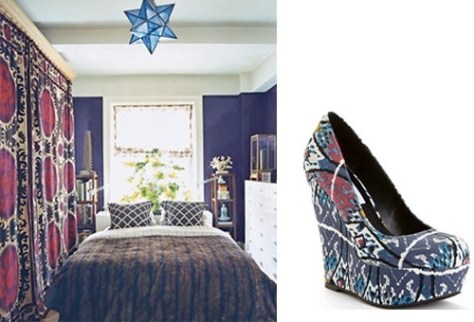 This room is an old favorite from Domino, with dark purple walls and serious suzani drapery. SHOE: Steve Madden Pammyy Ikat Platform Wedges ($99).