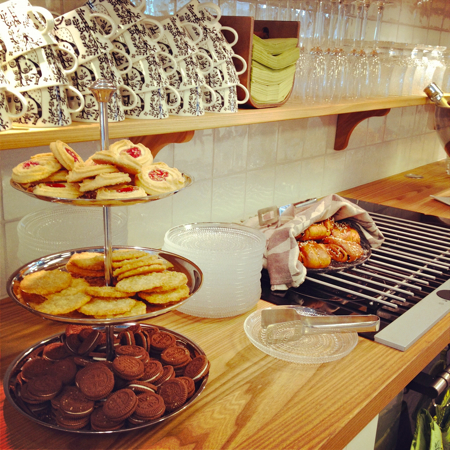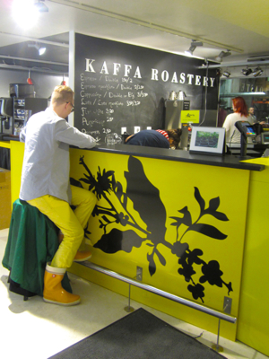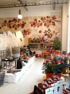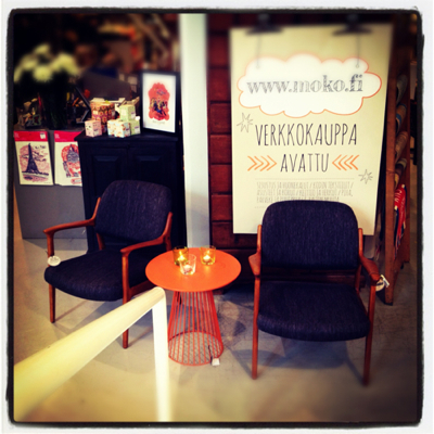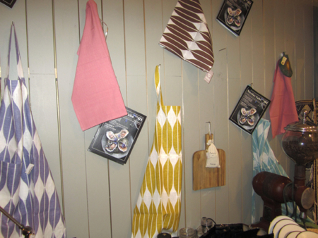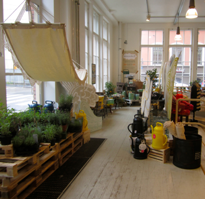 Last week I traveled to Helsinki, Finland for the first time, on a blogger press trip hosted by Visit Finland and World Design Capital Helsinki 2012, where I represented Design Milk, and took plenty of photos for StyleCarrot readers too. We rode bikes through the city, which is undergoing major urban renewal, foraged for edible herbs in the park, visited the future food market, and viewed an exhibition of student artwork from Aalto University in an otherwise mostly empty waterfront warehouse. We also went behind-the-scenes at the Marimekko corporate offices, where the fabrics are printed. And of course, shopped the outlet store. We had lunch on one of the days at a charming home decor shop called Moko, which has a cafe and coffee bar. It reminded me a bit of ABC Carpet & Home, on a much more modest and smaller scale, but cute.