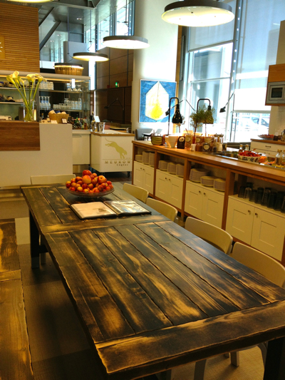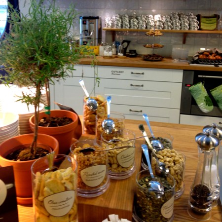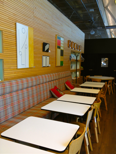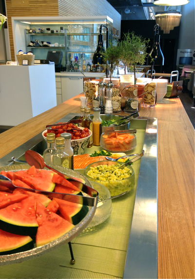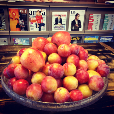 Last Tuesday I posted photos of Moko Market. Today it’s shots of Finnair’s fancy first class lounge at the Helsinki airport. Sadly, I flew coach (pretty ice blue and green color scheme, but very squished seating), so wasn’t privy to the treats. However the hostess did let me in to take pictures, helping pass my too much time before takeoff. It is seriously cute. I was dying to dig into the salad bar and soup tureens.