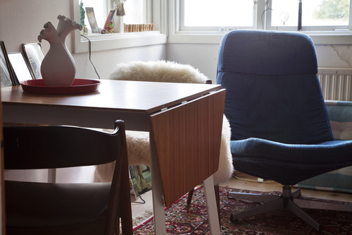 Inspiration: Her father was a designer at IKEA, so she further developed one of his chairs by removing the back so now it’s a cross between a chair and a stool. It’s stackable like a stool, making it a great extra to take out when there are guests.