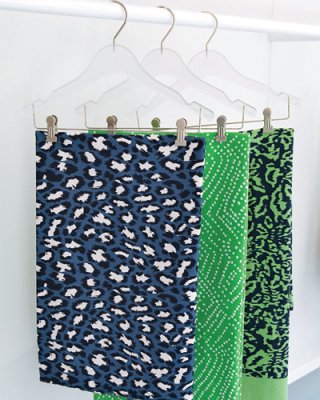 The colorful animal prints are fun, though I’d love to see some more original, global-inspired prints like the ones we saw on the runway the last couple of seasons. The stripes are not so interesting, but versatile for home decor, I suppose.