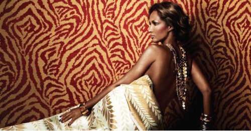 I love the graphic trellis pattern (it’s surely more affordable than Ms. Wearstler’s) and the peacock print is gorgeous.  Speaking of which, Iman is still stunning. Wow.