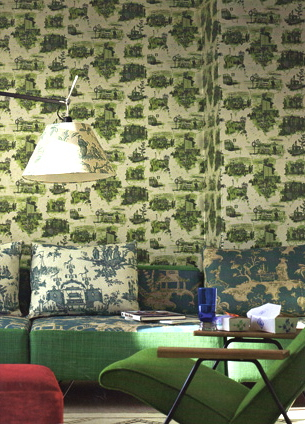 on  Timorous Beasties, “Glasgow Toile ” printed linen, 2004.