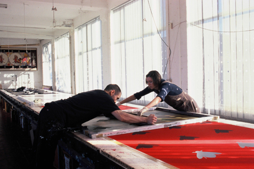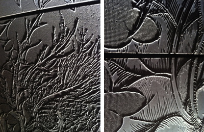 He told me that the theme of the gallery is “Quote Copy Update,” so all of the works in the space are about artists reacting to or emulating prior works of art, sometimes breaking traditions. Some look to the past to create something fresh with new technologies. Saywell says, “The Timorous Beasties ‘Glasgow Toile’ fits beautifully in that context. They looked at the old toiles of pre-Revolutionary France, and effectively created a toile for the 21st century.”