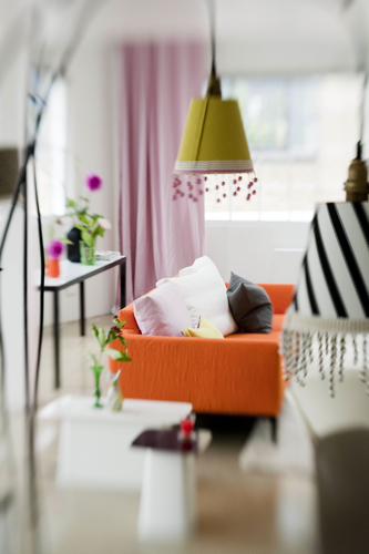 Mary McDonald has finally published a book, Mary McDonald Interiors: The Allure of Style, and it is amazing. Many of the pages feature her Beverly Hills estate, but there’s also a Bill Blass inspired bachelor pad, as well as the favorites we know from Domino, like the green and pink striped King’s Road media room, the bedroom with the pagoda-shaped headboard and orange pillows, and the pink entry adorned with gilded Chinoiserie mirror and zebra skin rug. There are plenty of photos of Mary too, who is as elegant and beautiful as her rooms. I had no idea she started out as a milliner after attending Parsons. She’s based in L.A. now, which is where she grew up. I’ve been corresponding with her via email, and she’s as gracious and lovely as she looks.