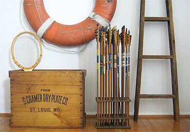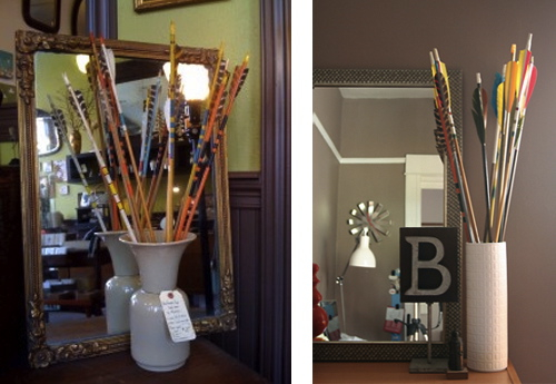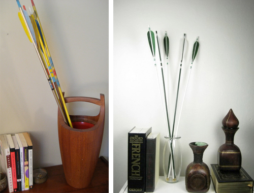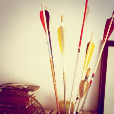I’ve been collecting images of arrows and targets for a while; I think I began to notice the trend in the fall. I thought it was a natural outgrowth of the trend of using feathers in decor, but I actually think it is part of The Hunger Games hoopla. In any case, I did a a piece on the arrow trend for The Inside Source earlier this year, and profiled blogger Amanda Hanley, in the Boston Globe Magazine. Put off by the high prices of vintage arrows, Hanley makes and sells arrows through her webshop Quivver. I, along with everyone else, saw The Hunger Games over the weekend, and as such felt inspired to post the roundup. UPDATE: I can’t believe I forgot about my own display of targets… They’re by Tracy Melton, and they’re hanging in our house on the Cape. It’s the first photo on the 23 Wall Installations post.
