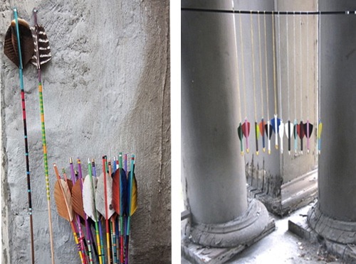 Arrows in an armoire at Anthropologie, Boston.