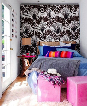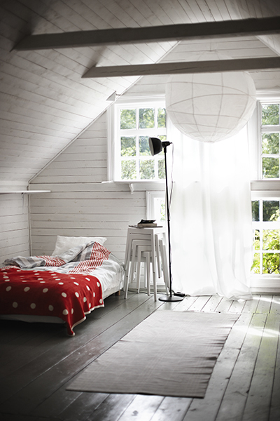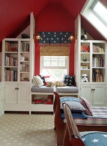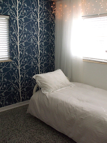 The enclosed built-in desk nook is a tiny sanctuary. The offset window offers a framed view of a slice of the treetop canopy.