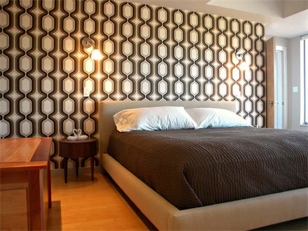 One of two master suites. Minka Aire ‘Flyte’ ceiling fan in brushed nickel with tiger maple blades.