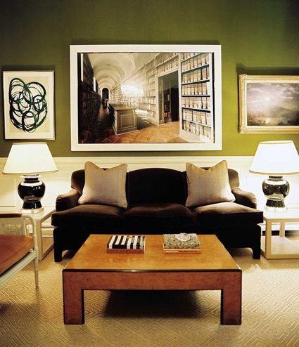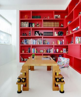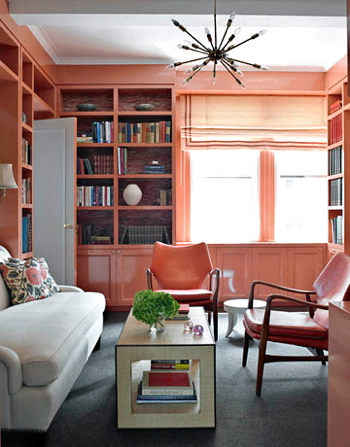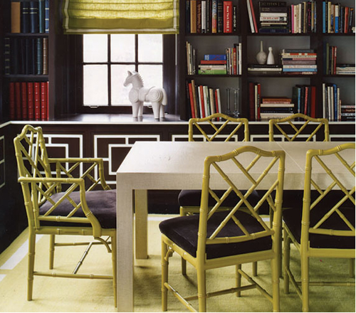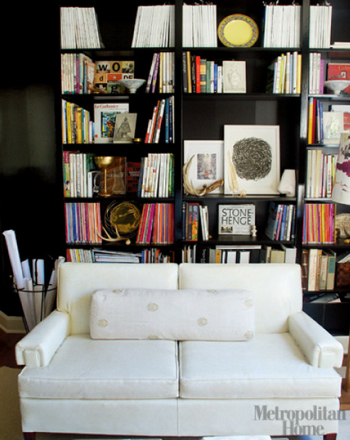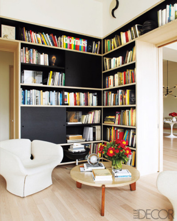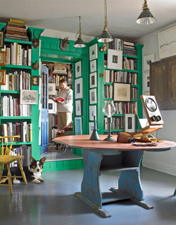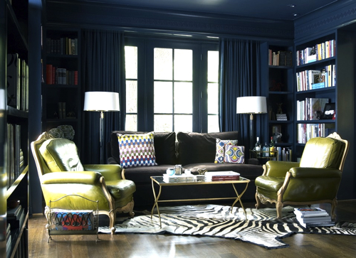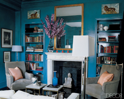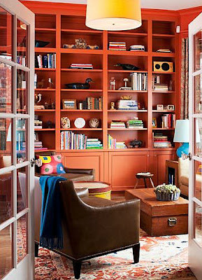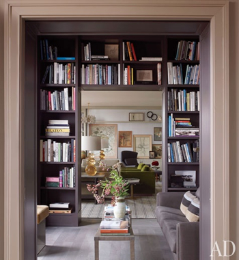 I love the richness of the painted woodwork in these rooms. The tones are of course, much deeper than I would dare to go in my own home. Most of the time. A couple of years ago, inspired by such shelving, I actually had my husband paint the built-in bookcases in our family room a deep purple. It wasn’t awful, but it wasn’t great either. We’ve since gone back to white, with taupey greige walls, compliments of the whole family room re-do. But still, it doesn’t stop me from admiring the work of designers accomplished enough to pull it off, particularly Katie Ridder, who does it with great panache, in monochromatic and highly contrasty spaces, and also, Miles Redd. Which colors do you love best?