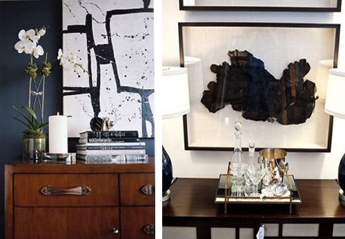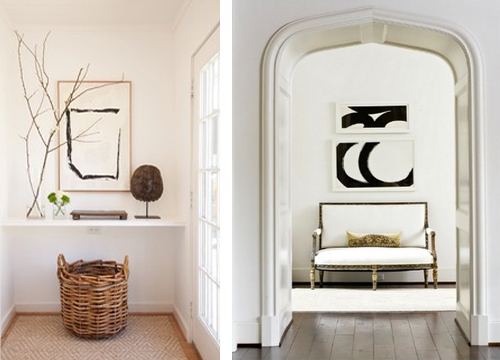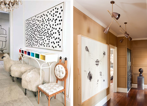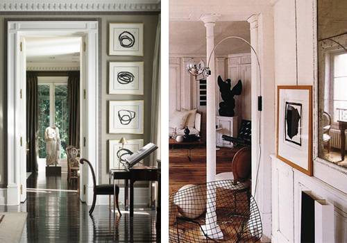 I’ve been really drawn to black and white abstract artworks recently. For instance, I could really go for a Franz Kline. OK, so that isn’t likely, but there are plenty of alternatives, and designers are incorporating them into interiors rather a lot of late. From misshapen ink blots and robust geometrics to feathery woodcuts and simple hand-drawn forms, black and white artworks elevate the sophistication level of a room.