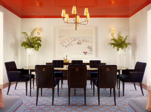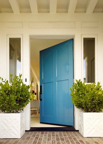 Photos of doors painted in cheery colors have been accumulating on my hard drive for a while, though lately they’ve seemed to increase in popularity. In addition to a mad rush of them on Pinterest, especially of the neon variety, several of the projects I’ve written about have included painted doors. There’s the Boston loft by Duncan Hughes, with the cerulean blue sliding barn door, the San Francisco home I wrote about in TRADhome, designed by Palmer Weiss (though that particular photo was not included), and designer Lisa Kreiling’s own townhouse I wrote about for Boston Home, soon to be published. Lisa told me that black doors were pretty much the starting point in her design.