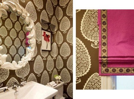 The Roman shade is Cowtan & Tout ‘Tiffany’ silk in mauve with a Samuel & Sons trim.