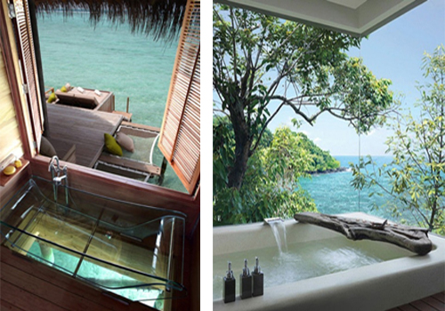 The tubs in this post are unreal. A lot of them are part of resorts, but not all. They look out over woods, oceans, mountains, fields, and city skylines. Some are even outdoors. They’re all heavenly.