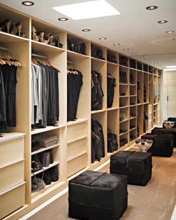 The walk-in closet she shares with her husband, Arthur Becker. Love the cowhide cubes. She should probably add some color to her West Coast wardrobe.