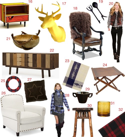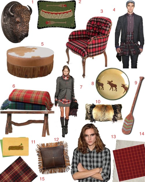 6. Tartan Cashmere Throws at Williams-Sonoma Home; Log Wood Bench With Bark, $178 at Traders and Company.