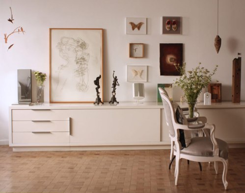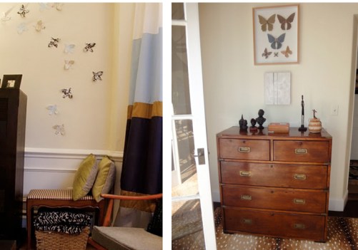 Some of the differences between the two rooms reflect how my tastes and Meredith’s can differ. She tends to favor curvier, more feminine styles, while I really like more spare, hard-edged lines. Luckily, blue and green are both of our go-to colors.