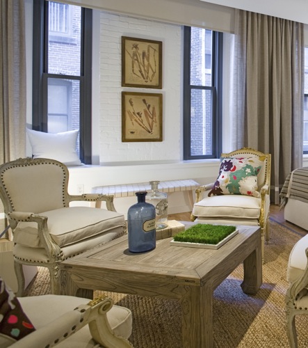 This is the second model apartment Stefanon was asked to design at FP3, a sleek 92-unit loft building in Fort Point. While the first one (which I’ll do a post on too, at some point), has multiple rooms, over-sized windows, and lots of light, this is the most challenging unit in the building — a second-floor studio with no view.