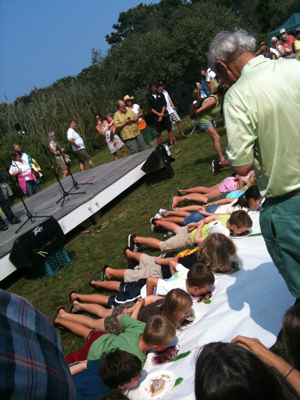 The kids’ pie eating contest. Girls took 1st and 2nd place.