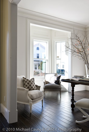 The old millwork of the window casings and panels were replaced with replicas featuring the same dimensions and profiles. There were ugly dropped ceilings that were removed. Now the rooms have an airy, lofty feel.