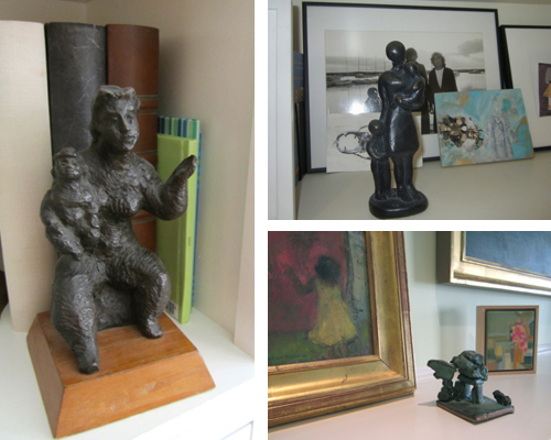 Left: Chaim Gross sculpture, a gift from my in-laws, It is bronze on a wood base, and very heavy.